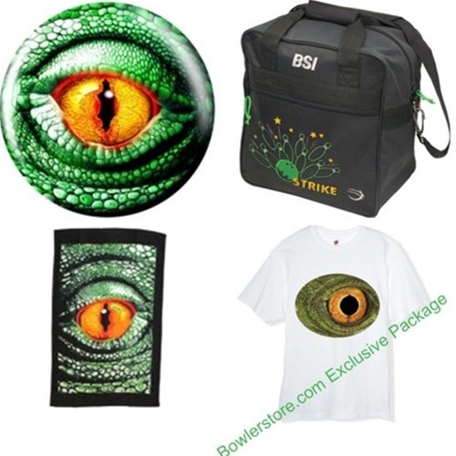 With this Exclusive Package, you will receive a Brunswick Lizard Glow Viz-A-Ball Bowling Ball, a Black/Yellow/Green Strike single ball tote bowling bag a matching Lizard Bowling Towel and a Lizard T-Shirt. Introducing Viz-A-Ball from Brunswick: Bowling balls with exclusive 360 degree, limited edition graphics. This bowling ball is perfect for the recreational bowler or beginner. This also works well for experienced bowlers who want to throw the ball straight at spares. This ball is made of a high quality polyester material and the actual image is embedded into the surface of the ball Black/Yellow/Green Strike Bowling Bag: 600D material Ball holder Holds shoes up to size 12 Lizard T-Shirt Bowling T-Shirt: All Sizes Available